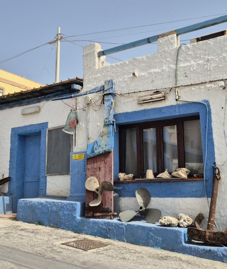 On arriving in Lampedusa, we anchored off a beautiful beach, not far from town and in front of a row of hotels. However, during the afternoon, strong southerly winds came up making the anchorage very rough, and with a close lee shore. When we went to check in with the Coastguard, we were told to lift anchor and move to a more protected part of the bay, and to tie up to a concrete wall. Memories flooded back to our last experience tied up to a concrete wall, but we did as they requested. However, we did put out an anchor off to deeper waters to keep us at a safe distance from the wall.