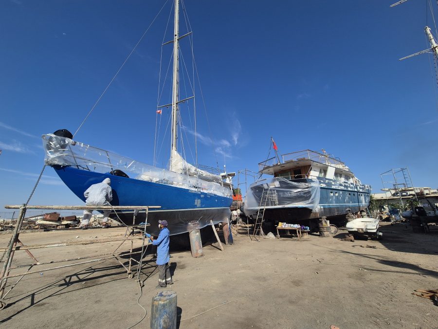 Of course, this all took a lot longer than we had initially planned on. We were pleased with the progress but when I got back from Australia, we were still a very long way off from being ready to relaunch and go sailing. We had booked and paid for a berth at Monastir Marina for 12 months, so we were keen to get back in our berth and finish some of the work there, which would stop boatyard fees. There is always plenty of activity around the Marina.